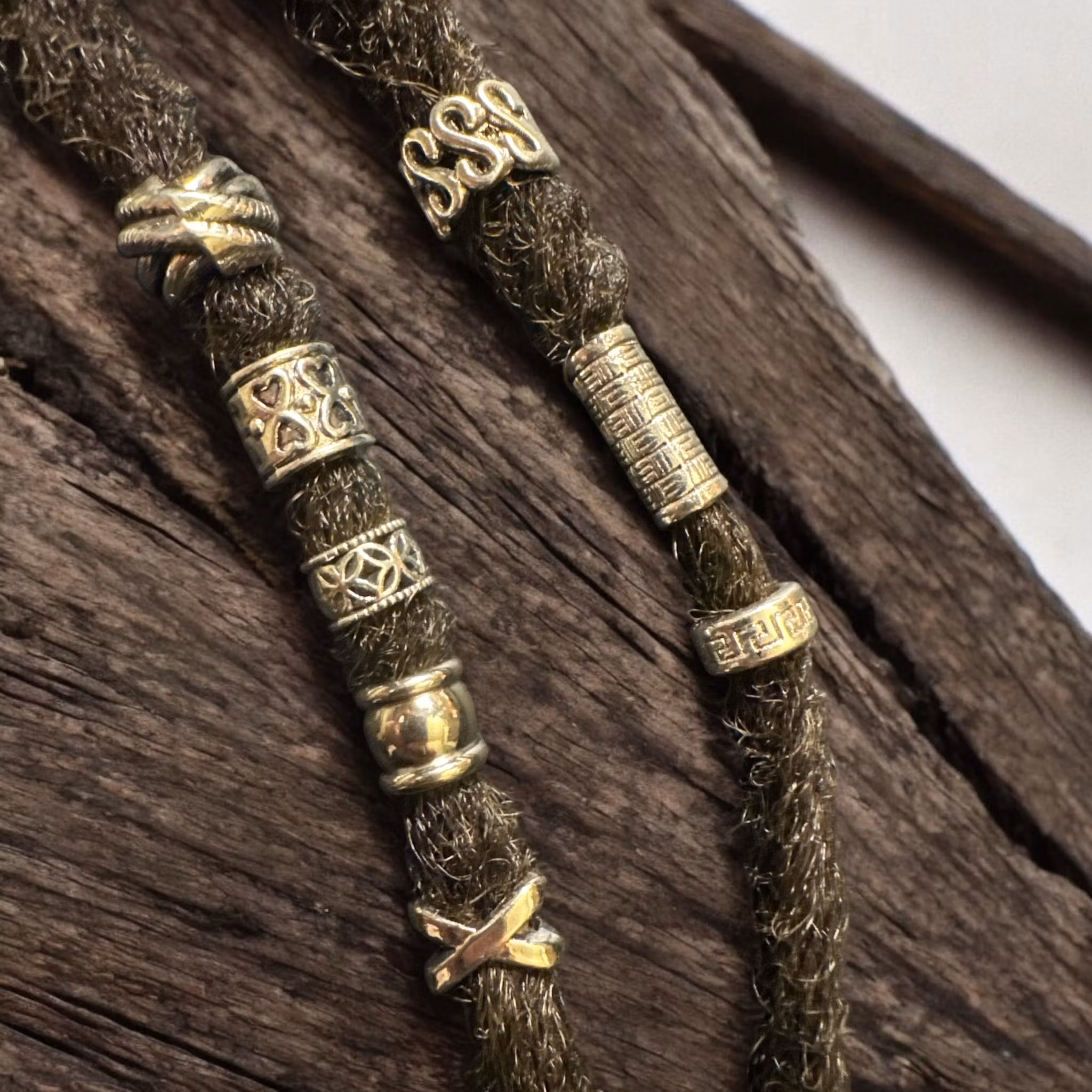 En perfekt kombination av rustika och eleganta element för dina dreadlocks. Dessa smycken är helgjutna och träs på dreadsen.
