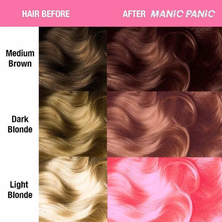 För bästa resultat, Blek håret till svagt blont med hjälp av Manic Panic Flashlight 30 eller 40 vol bleach kit, eller våran egen Extendblekning. Vissa färger kan fungera på ett naturligt blont eller kemiskt behandlat hår. Djupare skuggor kan ge förbluffande detaljer i ett mörkare hår.