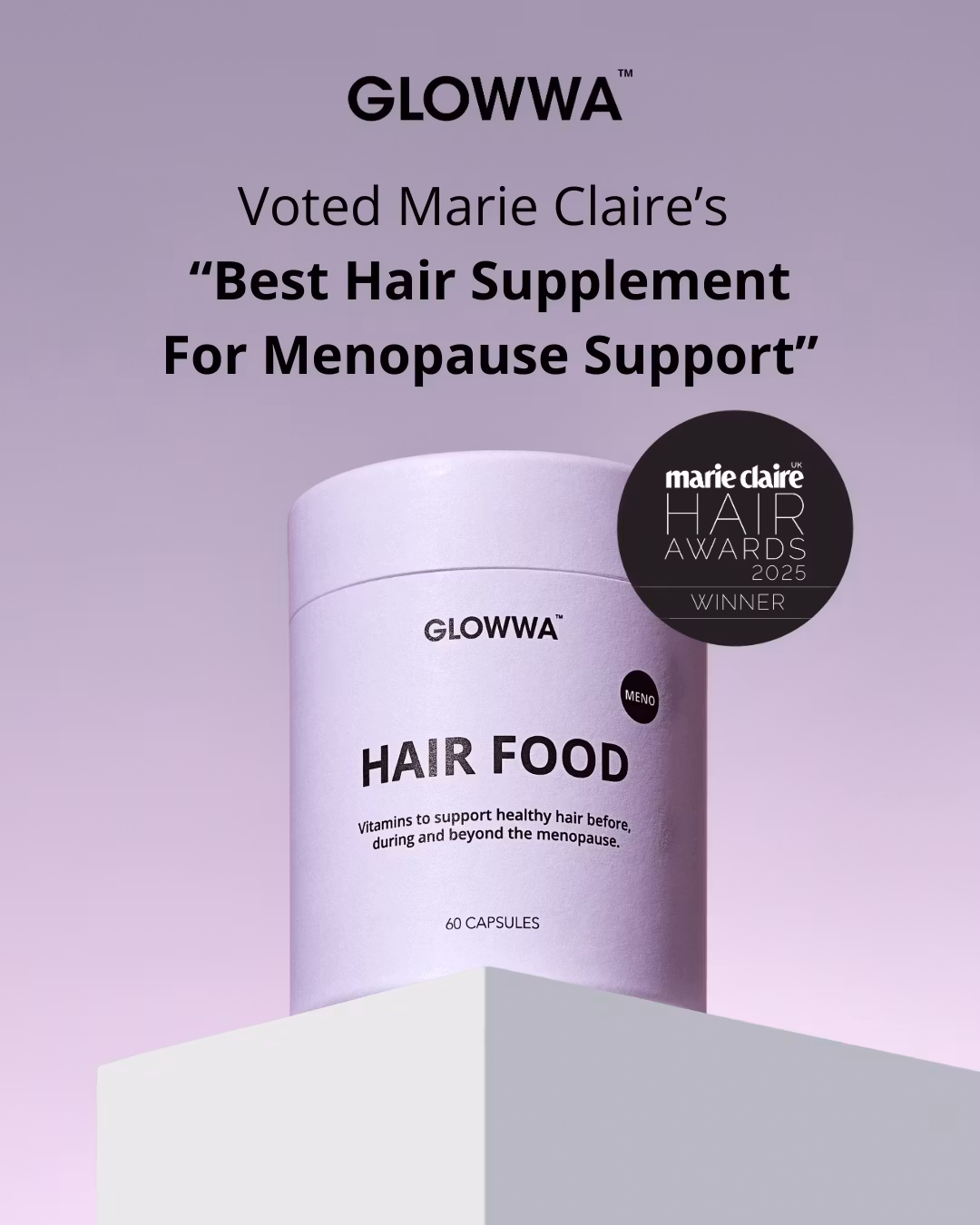 GLOWWA Hair Food™ Meno är ett avancerat kosttillskott framtaget särskilt för kvinnor i klimakteriet. Det stödjer hårhälsa, energi och allmänt välbefinnande under hormonella förändringar – inifrån och ut.